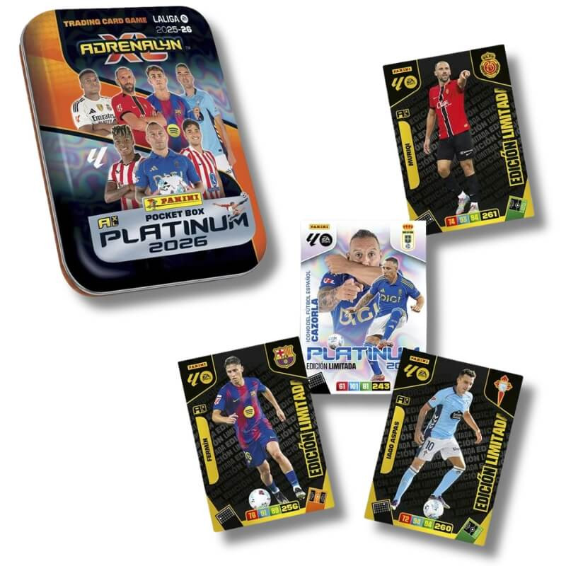 La Pocket Box Platinum 2026 juega otra carta: la de la exclusividad compacta. Panini indica que este formato reúne 30 cards exclusivas, entre ellas 1 card Platinum 2026 de tirada limitada, 3 cards de Edición Limitada y 26 cards bis de ampliación. Además, la guía oficial sitúa a Santi Cazorla como protagonista de la card Platinum 2026, lo que añade un punto nostálgico y muy de coleccionista veterano. Es un producto pequeño, pero con sensación de pieza especial desde el primer momento.